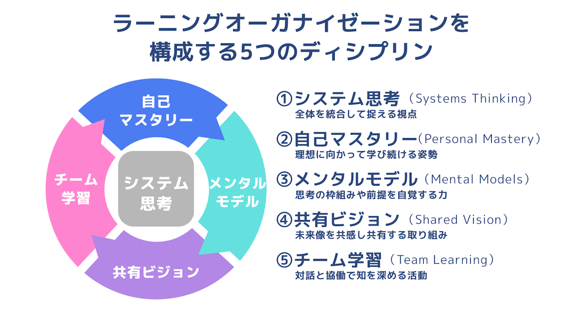 ラーニングオーガナイゼーションを構成する5つの構成要素(ディシプリン)